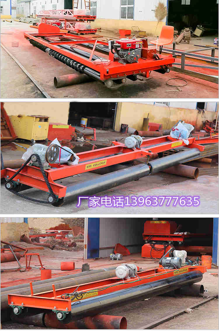 滚轴式摊铺机的轴是由6mm的钢管制造的,轴的直径是219,电机有两个,行走电机和震动电机。电压是三项电的,整平深度能达到30cm。本机是全自动的,带刹车效果,具有摊铺、压实、提浆、整平等功能,整平效果特别好。广泛用于各种公路,广场,机场跑道等混凝土路面上。可以根据您的要求来定制不同长度的机器,超长可以到12米。